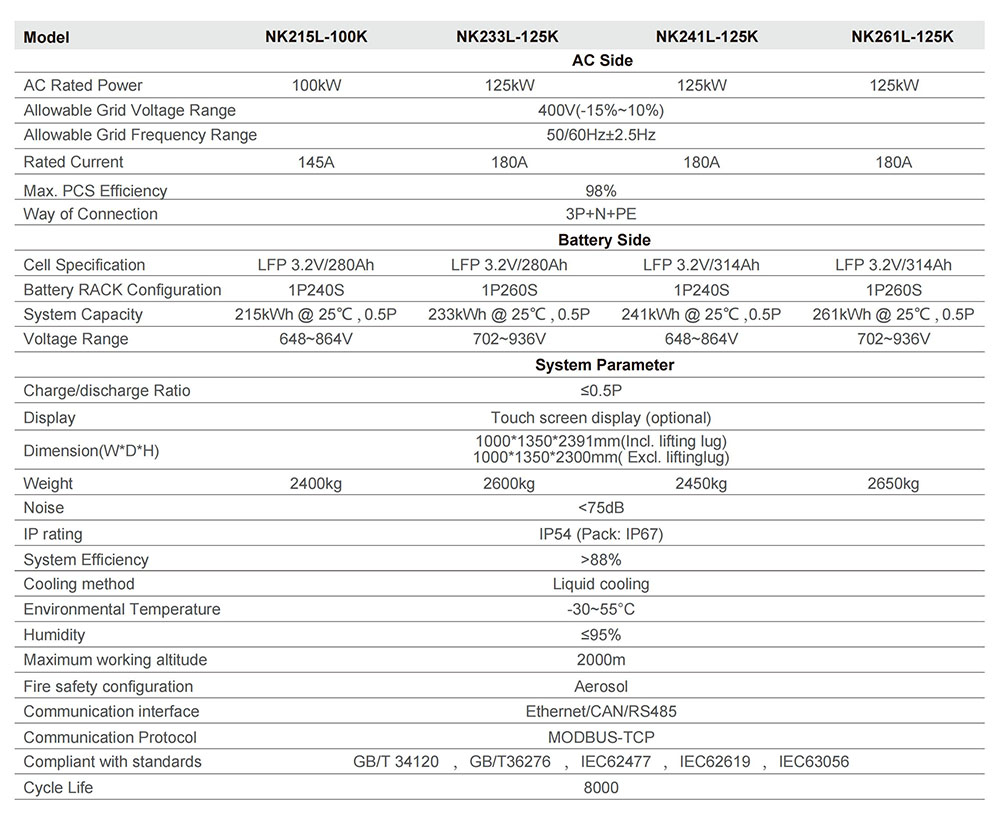 Inteligentne chłodzenie cieczą zwiększa wydajność i wydłuża żywotność baterii. Zbudowany z ogniw LiFePO4 o żywotności ponad 8000 cykli i stopniu ochrony IP55, obsługuje pracę 24/7. Modułowa konstrukcja umożliwia łatwą rozbudowę równoległą w przypadku rosnącego zapotrzebowania na energię.